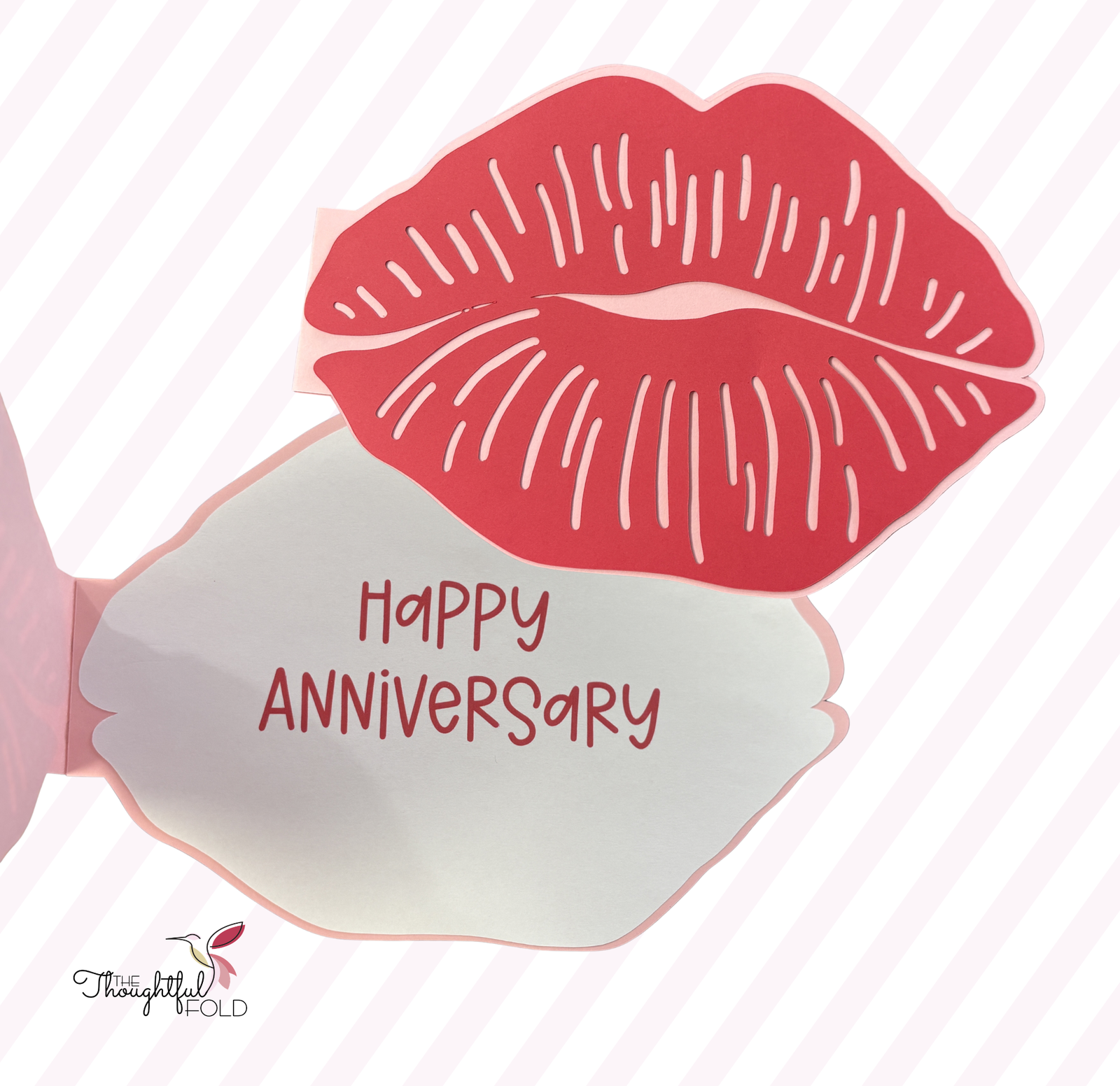 Celebrate love with a card that says it with a kiss. This handcrafted anniversary card is shaped like a pair of lips, creating a playful and romantic way to mark another year together. Perfect for sharing a heartfelt message with the one who still makes your heart skip a beat.